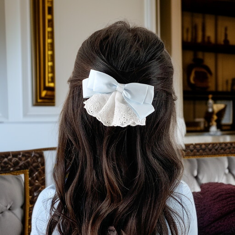 ● 繊細なレースと高品質ファブリックリボンを組み合わせた、女の子らしい可愛さを引き立てるヘアクリップです。