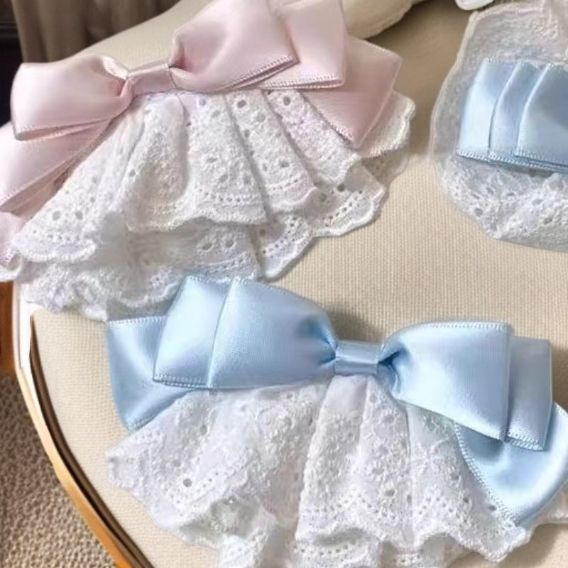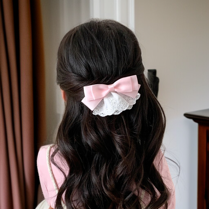 レースヘアクリップ ファブリックリボンヘアアクセサリー 可愛いガールズサイドクリップ